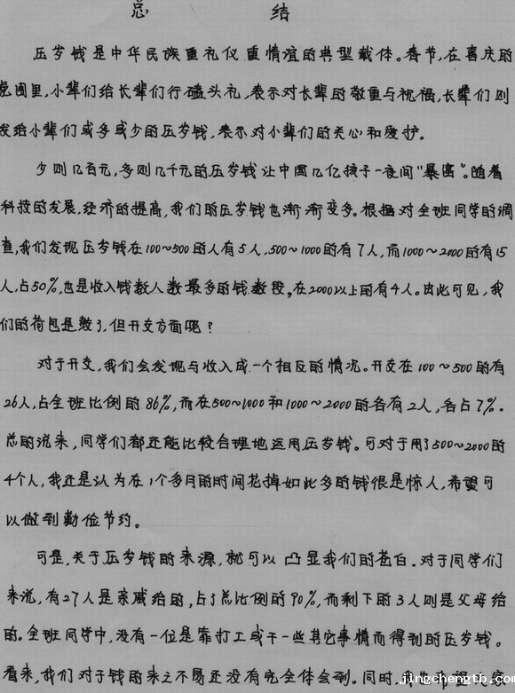今天,我做了一次“家庭主妇”:买菜、算账。 以前在许多书中看过父母辛苦做家务的描述,原来心里还觉得有点夸大其词,直到今天,我才发现那并不夸张。又要考虑全家的总饭量,又要考虑现有的钱……终于知道了父母的辛苦,也觉得错怪了父母回家就倒在沙发上。我决定要好好为父母捶捶肩、洗洗脚。当父母听到我要给他们捶肩时,高兴得合不拢嘴,父母就是这样容易满足。其实他们想要的并不多,我不禁一阵心酸。我应该能带给父母更多!
