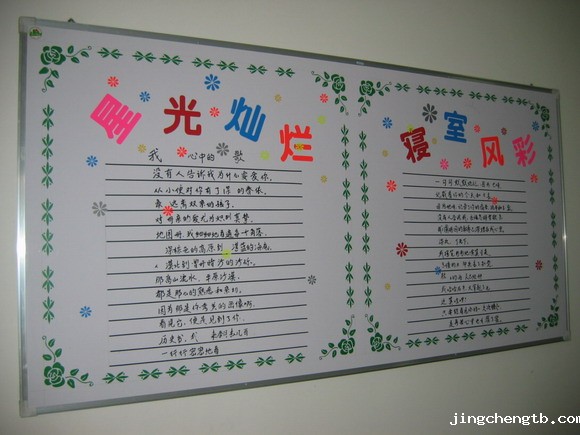 学生寝室文化墙由学生自行设计,楼道板报由学生收集资料,半月一期。