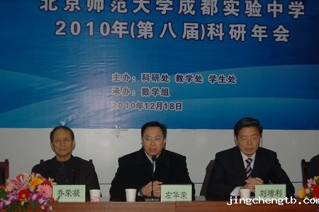 参与面广、影响深远 此次年会成都市教育局领导副局长左华荣、局长助理范春林、普教一处处长何荣、普教二处处长潘仲平,锦江区教师进修校副校长凌虹、中学室主任陈中华以及成都市教育科学研究院理论室副主任顾颉到会指导;北师大深圳南山附中的领导、北师大什邡外国语学校以及兄弟学校的老师们也参加我们的会议。