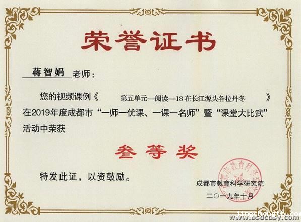 初中语文 | 蒋智娟 | 第五单元--阅读--18 在长江源头各拉丹冬 | 三等奖 |