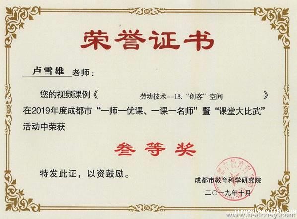 初中综合实践活动 | 卢雪雄 | 劳动技术--13.“创客”空间 | 三等奖 |