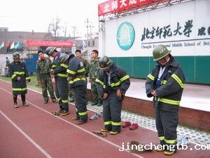 | 根据市教育局安全工作会议精神,为加强生命教育,提高学生生命意识、生存能力,尤其是住校学生的安全自救与安全防范意识,在冬季火灾的多发时节,北师大成都实验中学与锦江区消防大队和成都市消防支队七中队于2004年12月23日下午5:00在北师大成都实验中学学生公寓和操场联合举行了一次“防火逃生技能演练”活动,活动包括:“模拟火情”(在学生公寓中放烟雾弹);学生逃生(学生在学校行政干部和生活教师指导下,用湿毛巾捂住口、鼻,手扶着墙壁下楼);消防云梯车营救被困学生(学校安全保卫干事王光辉在学生公寓六楼窗口模拟被困学生被消防官兵救出);实地灭火(消防官兵指导生活教师用灭火器灭火三次);消防教官讲解灭火器知识,点评学生模拟逃生中存在的问题和注意事项;王延玲副校长总结本次消防演练活动。参加演练的有成都市消防支队杜队长、锦江区消防大队杨队长、多名消防官兵,北师大成都实验中学刘增利校长和王延玲副校长以及中层以上干部、部分班主任、全体生活教师、医务室工作人员和住校生等。《成都日报》等媒体对这次演练进行了报道。本校学生积极热情地参加演练,这次仿真演练提高了我校学生的逃生技能和安全意识,增强了学生对消防官兵的崇敬之情,使学生切实感受到社会对未成年人成长的关心与爱护,进一步明确了“珍惜生命,关爱他人,努力学习,回报社会”的教育主题。 | |