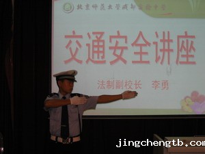 | 2005年9月14日下午,我校特别邀请学校法制副校长、成都市交警五分局一大队警长李勇同志,为我校初2008级全体学生进行交通安全报告会。首先全体同学观看了交通安全宣传片《凋谢的花季》,受到了深深的震撼。然后李校长精彩的报告《做一名守法的好公民》和罗警官标准的交通手势表演,赢得了同学们的阵阵掌声。讲座过程中,同学们积极参与,不断提问,气氛热烈。我校初2008级学生的良好表现以及年级组的规范组织,给交警同志留下了深刻的印象。通过这次讲座,同学们深受教育,纷纷表示一定要自觉遵守交通规则,并向家长和亲属宣传遵守交通规则的重要性,纷纷表示要进一步做一个文明的市民、学生,并表示要将我校良好的校风展现给广大市民。 | |