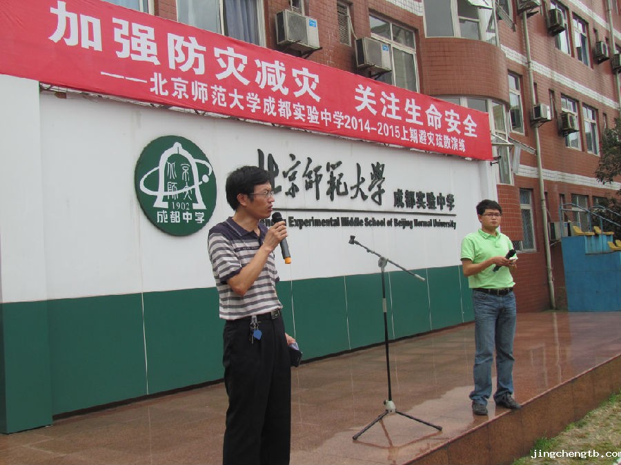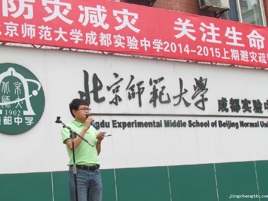 张文勇副校长对本次演练进行了讲评。他说,今天表现最好的是初一、初二年级,他们疏散动作迅速,逃生路线清晰,用时最短,特别是初二1班全体学生,在班主任的带领下,安全意识强,防护工作做得好,逃生过程中全班统一用书包保护头部,动作规范。相比之下,高年级对避灾紧急疏散演练重视不够,在撤离危险区域时动作迟缓而影响了全校的演练效果。张副校长还对每天各楼道值班老师提出了要求。最后,张副校长就近期社会上出现女大学生、女中学生失踪案件,对全校师生进行了交通安全、社会治安方面的安全教育。