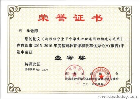 我校参加2015—2016年成都市基础教育课程改革优秀论文(报告)评选活动成绩喜人