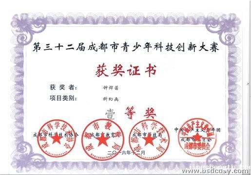 2016年成都市青少年科技创新大赛是由成都市科学技术协会、成都市教育局、成都市科技局、成都市团委等四个单位共同主办的,内容包括:创造发明、科学论文、信息学(计算机)、少儿科学幻想画等比赛项目。我们将按照青少年科技创新大赛的要求,进一步拓宽我们科技教育的渠道,努力把科技教育打造成我们学校的又一特色。
