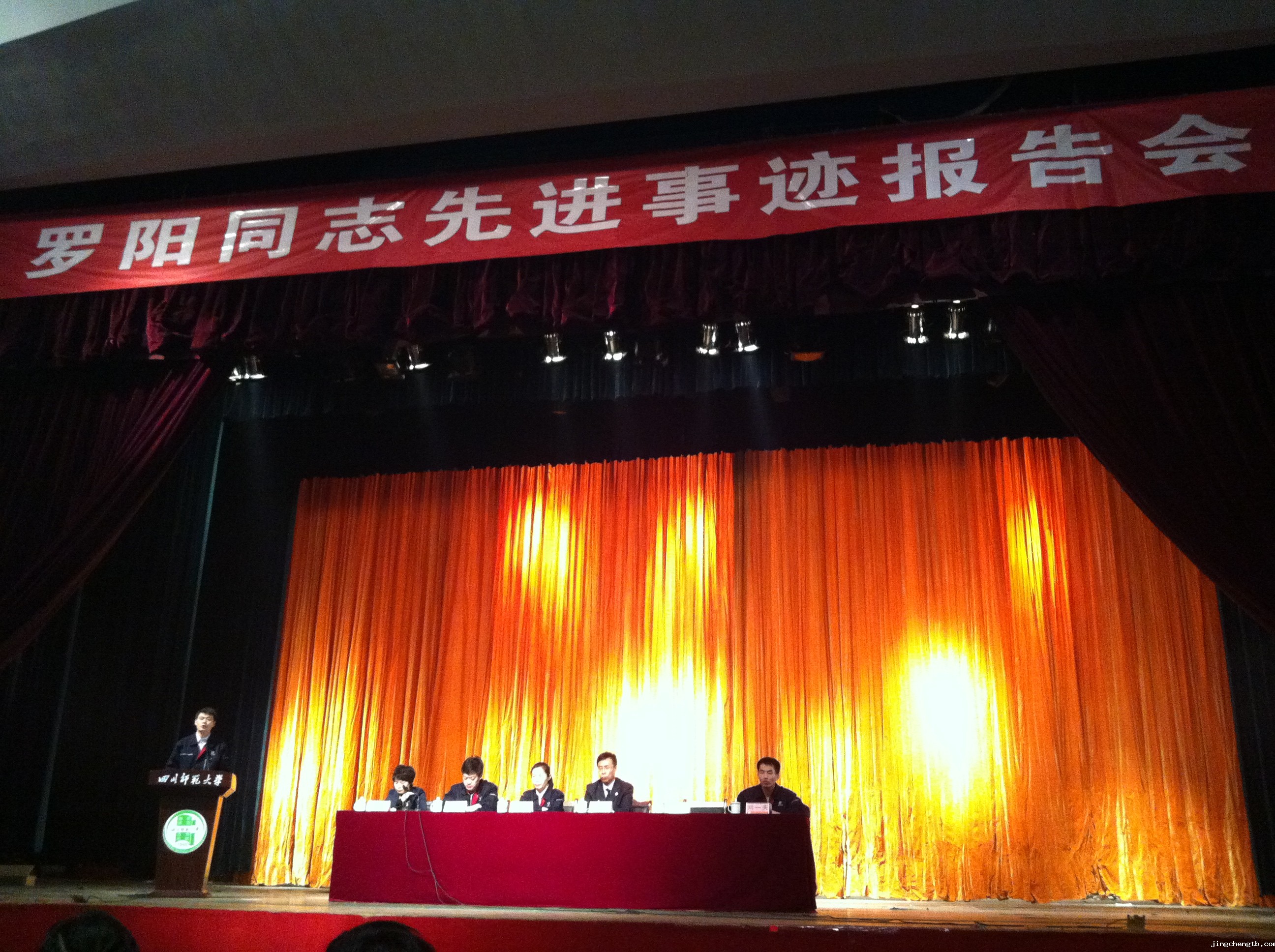 【直升年级2班 钱昊天 讯】2013年3月8日上午9时,我校四名直升年级同学代表在校团委韦旭颖老师的带领下参加了在四川师范大学成龙校区举办的“罗阳同志先进事迹报告会”。