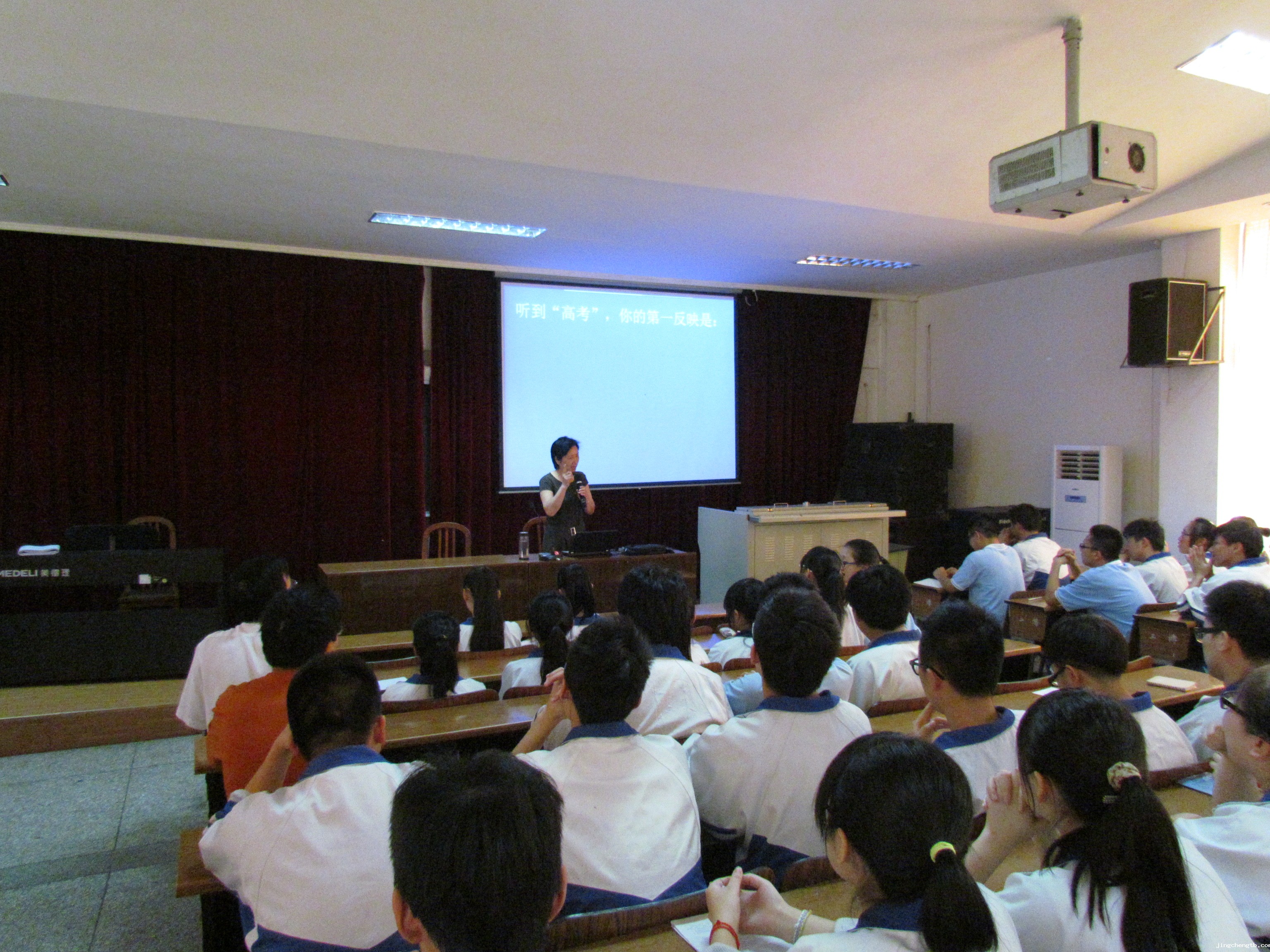2013年4月27日下午,我校邀请到心理专家张渝老师来校为高三学子们进行考前心理讲座——享受高考。张渝老师是全国优秀教师; 中国心理学会会员;中国教育学会会员; 四川省心理学会理事;四川省中小学心理教育专委会副秘书长;副主任委员。 四川省学习科学专委会常务理事; 成都市家庭教育指导中心首批特聘专家; 成都市未成年人心理咨询中心首批特聘专家。讲座由学生处敖主任主持,高三全体班主任也参加了讲座。