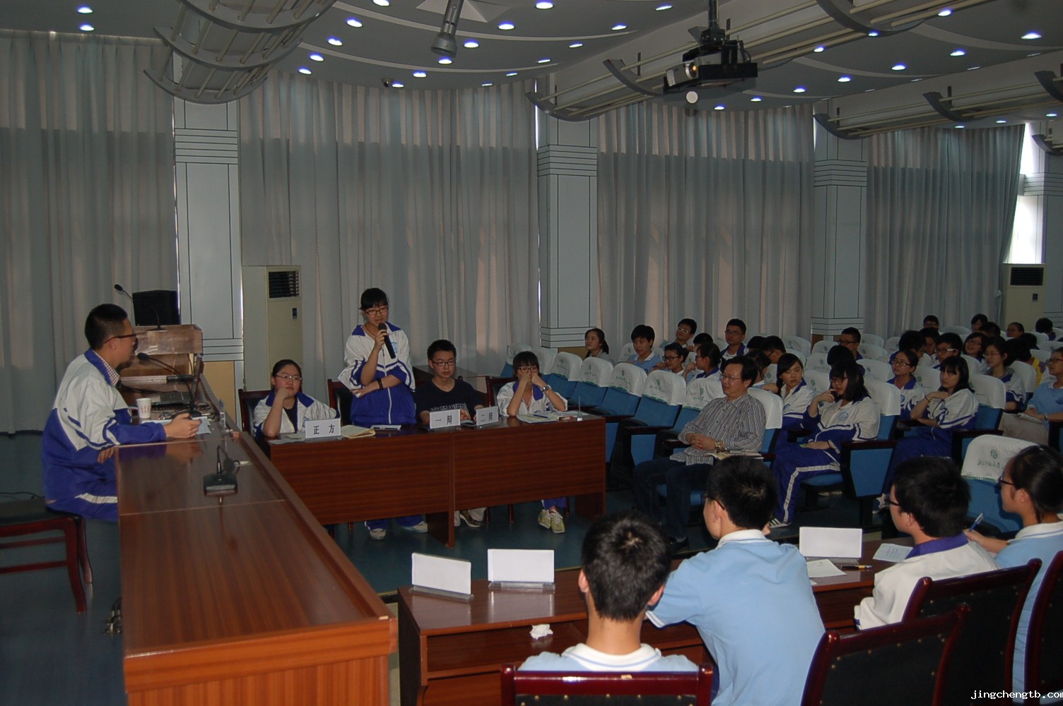 第二轮驳立论阶段甫一开始,正方一辩便锋芒出鞘,抛出一连串犀利的质问并辅以了强有力的数据和论例。语言承袭一贯的明了清晰风格,引经据典间无不显示着高二学生高过不止一筹的知识量。面对如此强大的正方二辩,反方二辩也毫不示弱,举出了不少实例来反驳正方辩手,语言条理清楚,不卑不亢,既不因高二的庞大知识量而妄自菲薄,也没有因充分的准备而显示出一丝傲气自大。谦逊之间显示了高一同学的稳重气度。在同学的雷动掌声中,和在座几位老师赞许和些许玩味的眼神中,第二阶段的辩论渐渐把比赛推向了三阶段自由辩论的高潮。