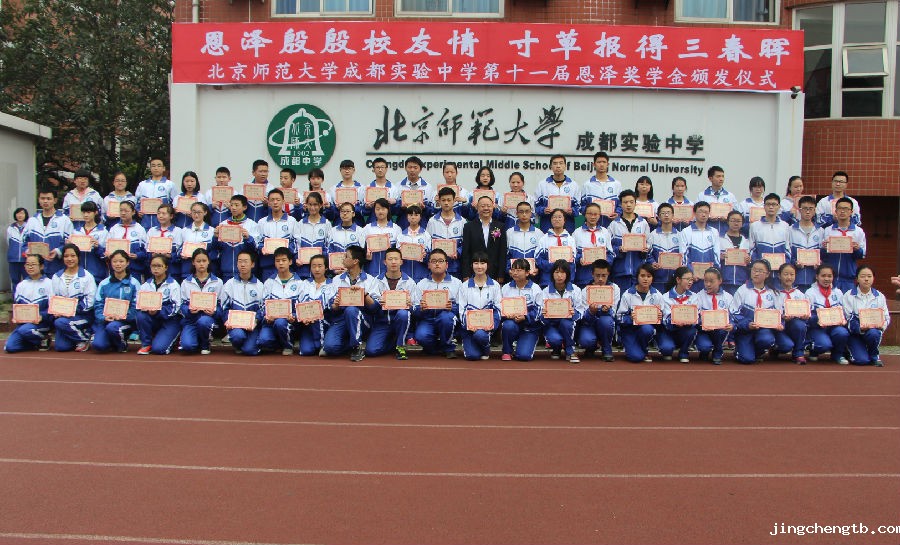 【学生处 袁野】2015年3月18日星期三下午,我校第十一届恩泽奖学金颁奖典礼在操场隆重举行。本次出席颁奖典礼的嘉宾有四川大学校长助理梁斌教授,北师大成都实验中学刘增利校长以及学校各相关领导。