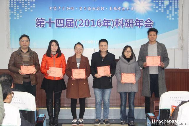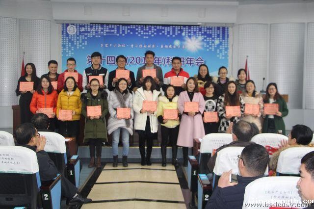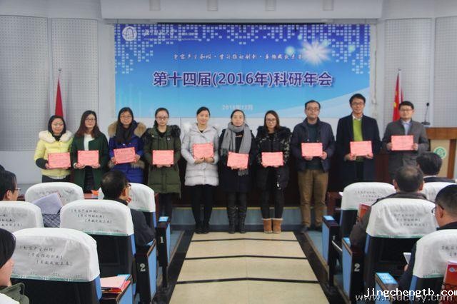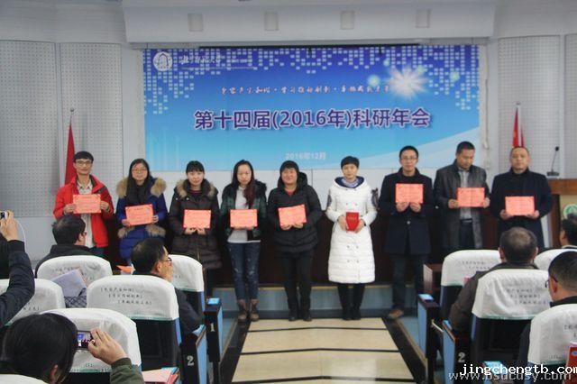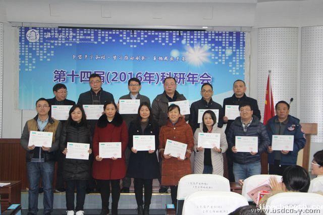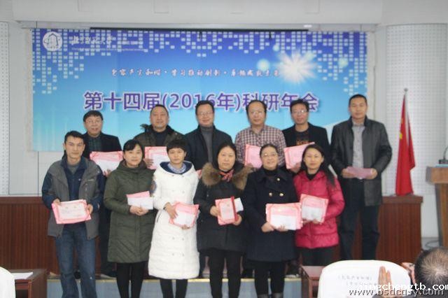在欢快的音乐声中,学校领导为三笔一画比赛的优胜者、红军长征胜利80周年经典诵读比赛的获奖者、基于“核心问题学思课堂”的优质示范课的授课老师、“基于核心问题学思课堂的主题研讨课赛课”的获奖者、小课题优秀课题奖获得者颁发了获奖证书或荣誉证书。会议还为一年来在教育科研中做出成绩的各个教研组颁发了科研协作奖。
