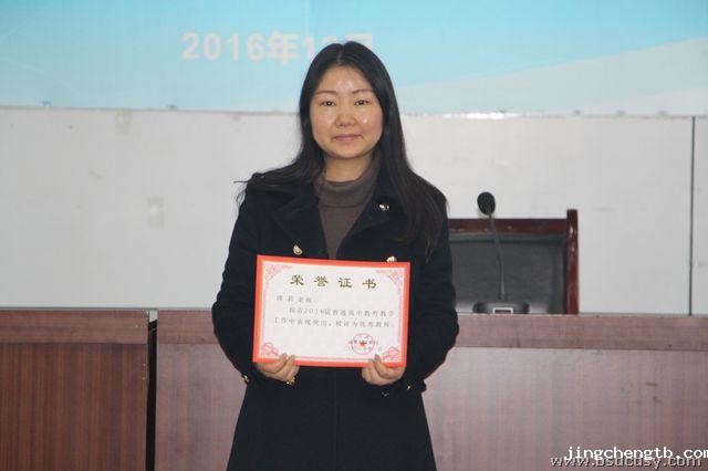 刘增利校长还在会上宣读了对在2016年高考中做出贡献的高三老师的嘉奖令,并为获此殊荣的高三老师颁了奖。刘校长宣布,在2016年成都市高中工作会议上,我校获得继2008年以来的连续第九届表彰,理科实验班班主任化学老师陈莉被评为高2016届优秀教师,在全校老师的掌声中陈莉老师从刘增利校长手中接过了荣誉证书。