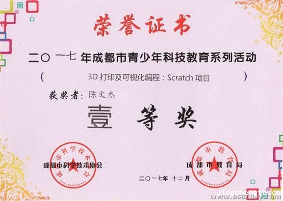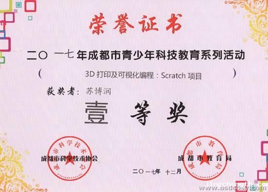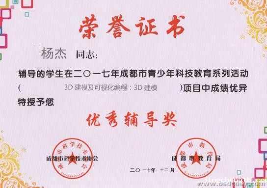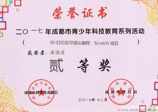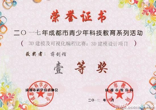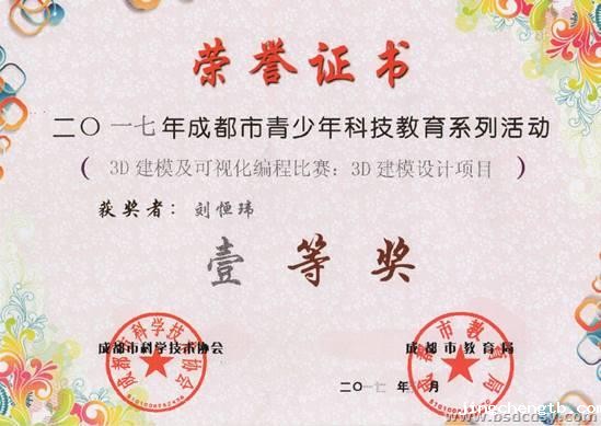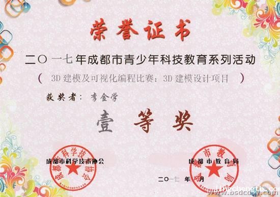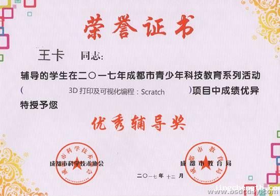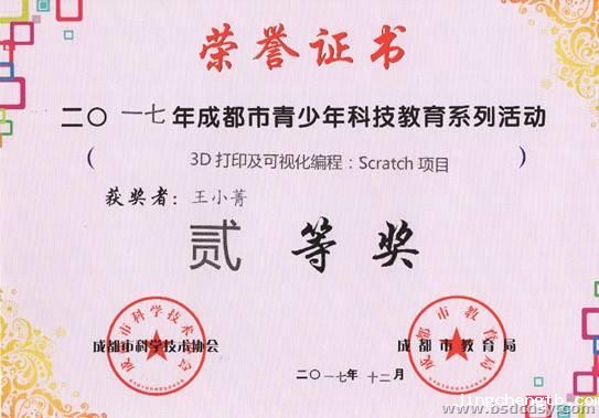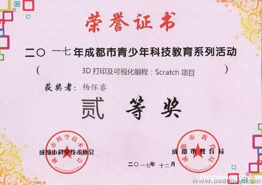 在2017年成都市青少年科技教育系列活动中,我校杨杰、王卡两位老师分别带领学生参加了3D建模及可视化编程比赛。在3D建模设计项目中,杨杰老师指导的刘恒玮、李俊谊、蒋智熠、李金学等四位同学获得了四个一等奖,唐魁龙同学获得二等奖;在Scratch项目中,王卡老师指导的胡梓堃、苏博润、陈文杰三位同学获得了三个一等奖,王小菁、杨怀睿、唐灏原、刘奇蒙四位同学获得二等奖。王卡和杨杰老师均获得了优秀指导教师称号。