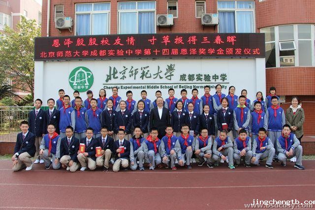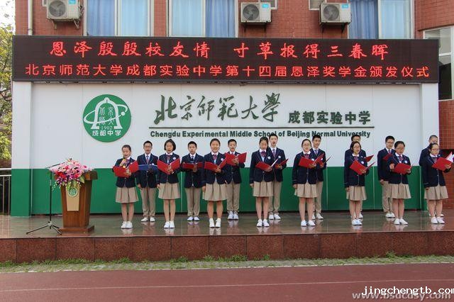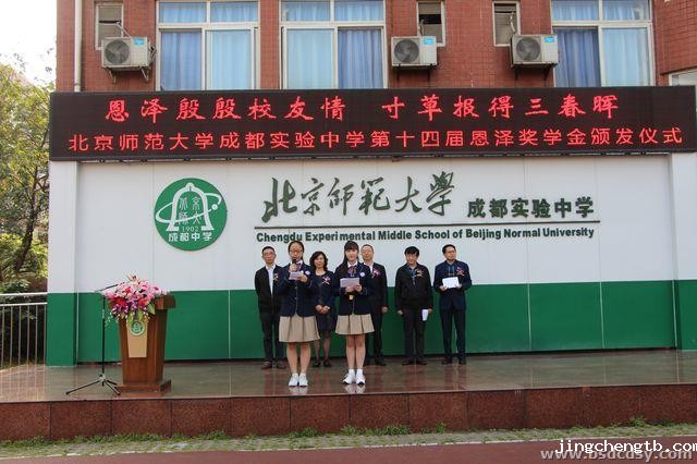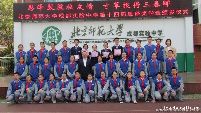 大家好!今天又到恩泽奖学金的颁奖时刻了,今年是第14届恩泽奖学金颁奖,我同北师大成都实验中学的同学们、老师们一样,非常高兴,这是一个值得祝贺的日子。我每年都参加颁奖典礼,我已经成为北师大成都实验中学的一员,非常兴奋、也非常幸福。我们在一起,盘点过去一年我们取得的成绩,祝愿来年的进步。在恩泽奖学金设立的14年中,北师大成都实验中学取得了长足的发展,连续10年获得成都市教育局表彰,去年学校高三毕业生有三分之一被211、985高校录取,一批又一批的同学获得恩泽奖学金,我为学校的发展感到高兴,也为我们这些同学取得好成绩感到骄傲。