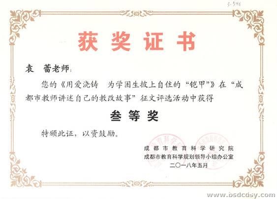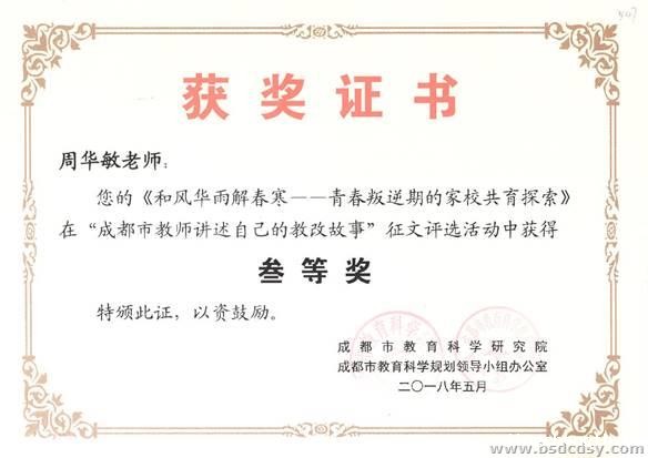 我校教师获成都市“一线教师讲述自己的教改小故事”奖
