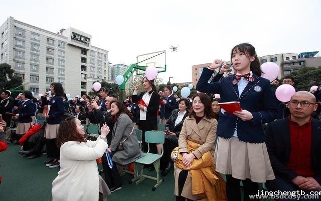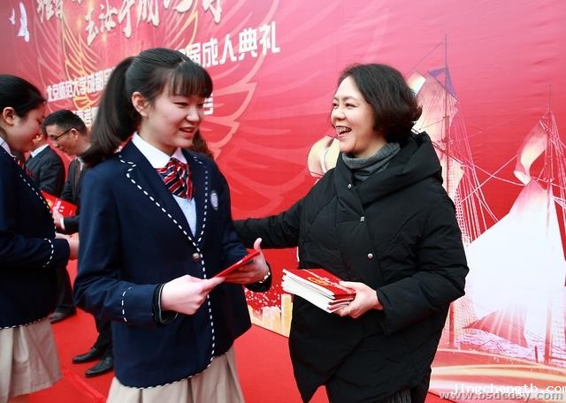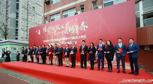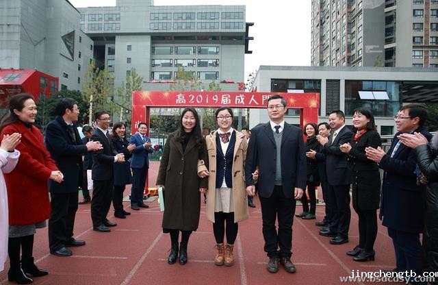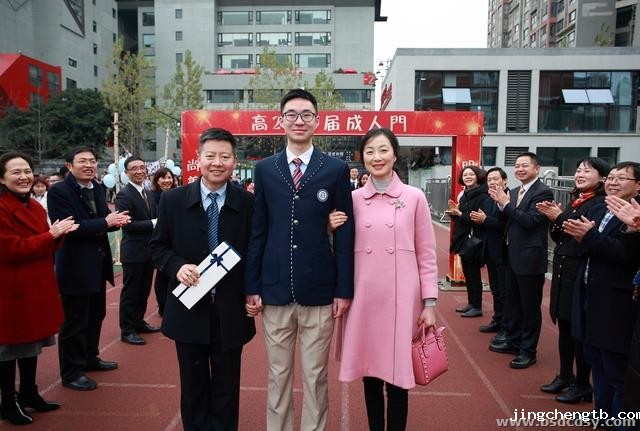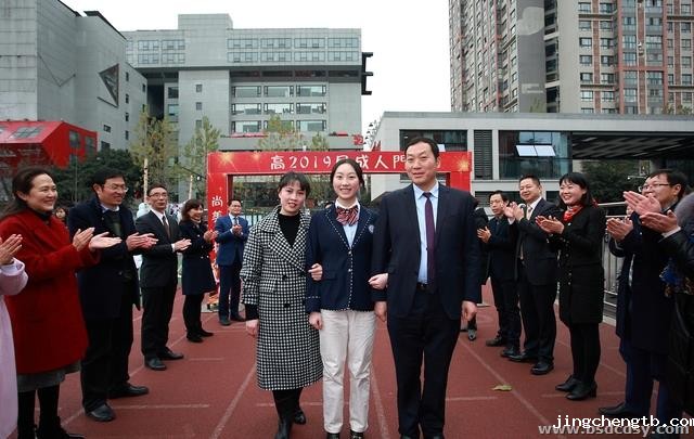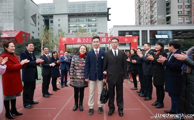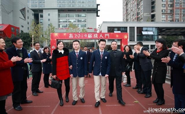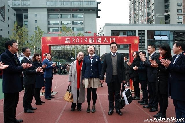 跨越成人门意味着长大,意味着担当。在老师们的保驾护航下,家长携手自己的孩子跨过成人门,开启新的起点。走过孩提的幼稚,挥别垂髫的无知,回望束发的青涩,笑别及笄的疑迟,同学们雄姿英发,斗志昂扬,以自信之姿感染了全场。