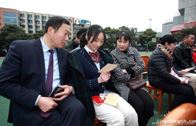 紧接着,高2019届全体老师上台致辞,老师们对同学们表示祝贺,告诫大家不忘初心有担当,砥砺自我敢奋进,挥洒汗水方能胸有成竹。