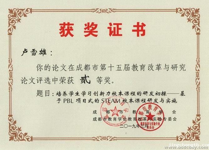 为了推进教育研究与改革,鼓励广大教师积极总结提炼自己的教育改革经验与成果,成都市教育学会教育改革与实验专业委员会开展了“成都市第十五届教育改革与研究学术论文”评选活动。
