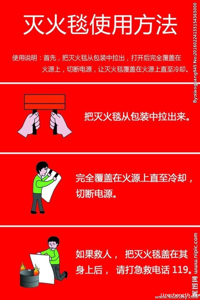 面对一些可以自救的火情,这里交给大家正确的使用干粉灭火器和灭火毯的方法: