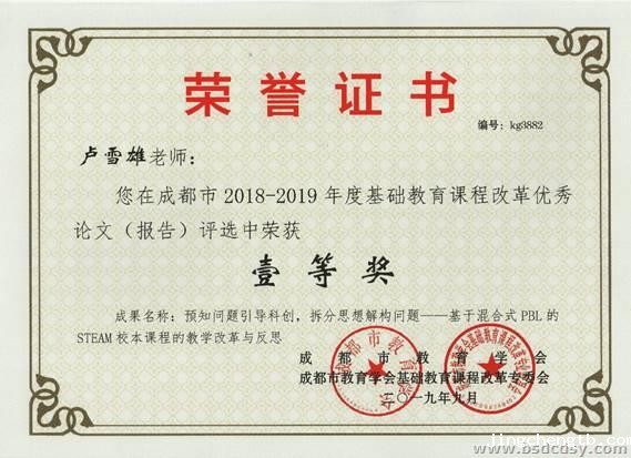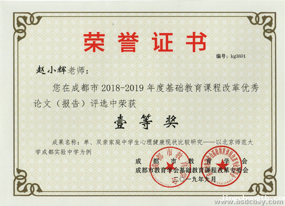 我校十九位老师喜获成都市基础教育课程改革优秀论文(报告)奖