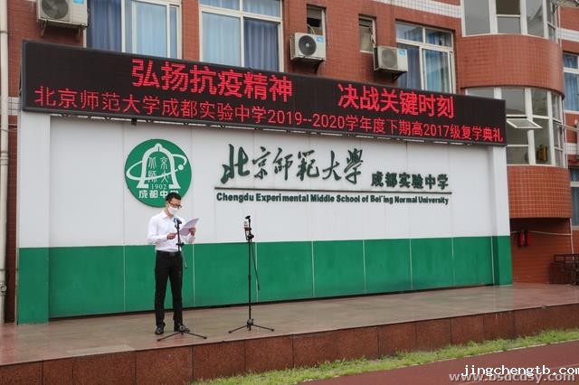 典礼过程中,学生处副主任蔡怡就我校防疫期间的学生一日流程、通风、清洁、消杀等管理措施进行了详细的说明。副校长张文勇补充道,每一位师生要仔细阅读我校编制的《新冠肺炎防控复学手册》,以便清楚各环节防疫细节。