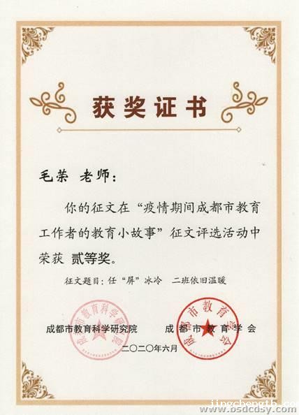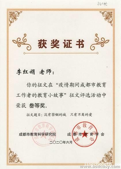 为展现广大教师在疫情期间所付出的心血和取得的成绩,同时也向社会宣传教育工作者在全民抗疫时期所做出的特殊贡献,成都教育科学研究院、成都市教育学会联合开展了“疫情期间成都市教育工作者的教育小故事”征集活动。