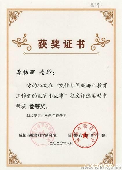 我校五位老师在“疫情期间成都市教育工作者的教育小故事”征集活动中获奖