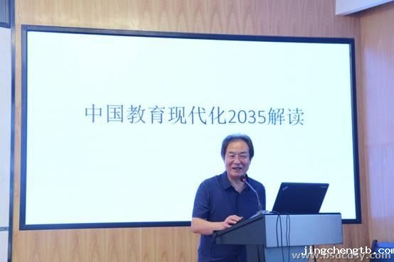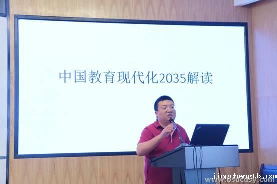 四川省人民政府督学团专家、成都市人民政府首席督学、四川师范大学教育科学学院教授,四川省特级教师、中小学正高级教师李江源应邀到会为大家做了《中国教育现代化2035解读》的报告。李教授用诙谐的语言、独到的见解、透彻的分析、精辟的总结,生动形象,幽默风趣的从宏观的国家方针政策到微观的社会生活形态,从中国传统文化到国际时事热点,对《中国教育现代化2035》进行了八个方面的解读。1、《中国教育现代化2035》编制的背景和意义;2、《中国教育现代化2035》的定位;3、《中国教育现代化2035》的突出特点;4、《中国教育现代化2035》提出了推进教育现代化的思路理念;5、推进教育现代化的总体目标;6、《中国教育现代化2035》的十大战略任务;7、《中国教育现代化2035》提出的目标如何实现;8、科学设计教育现代化的发展战略、目标与路径。李教授语言接地气、实在,不但提高了我们对教育现代化的思想认识,还用“我选择、我负责”的至理名言坚定了我们献身教育事业的理想信念!