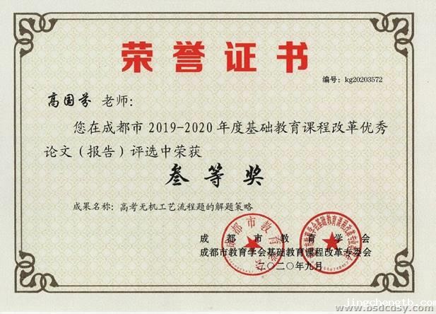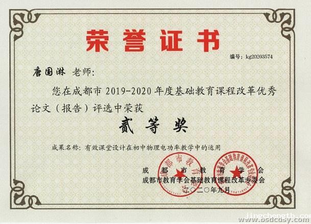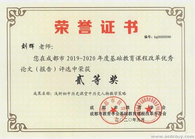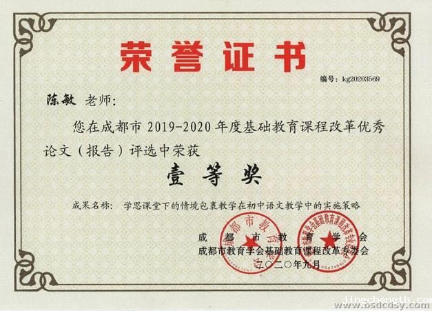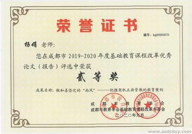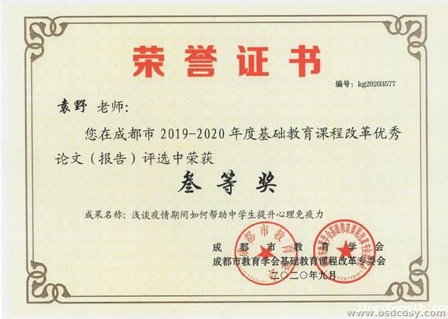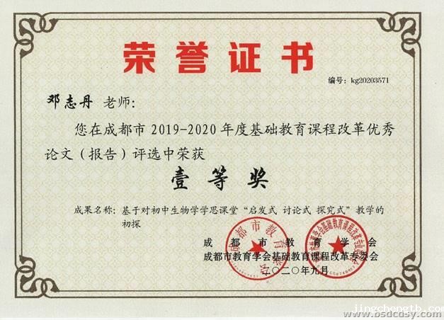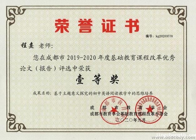 2019—2020年成都市基础教育课程改革优秀论文(报告)评选报喜
