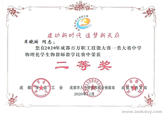 金秋十月,喜迎捷报。由成都市总工会、成都市人力资源保障局、成都市教育局共同主办的“2020年成都市百万职工技能大赛——中小学教师技能大赛”于10月29日落下帷幕。