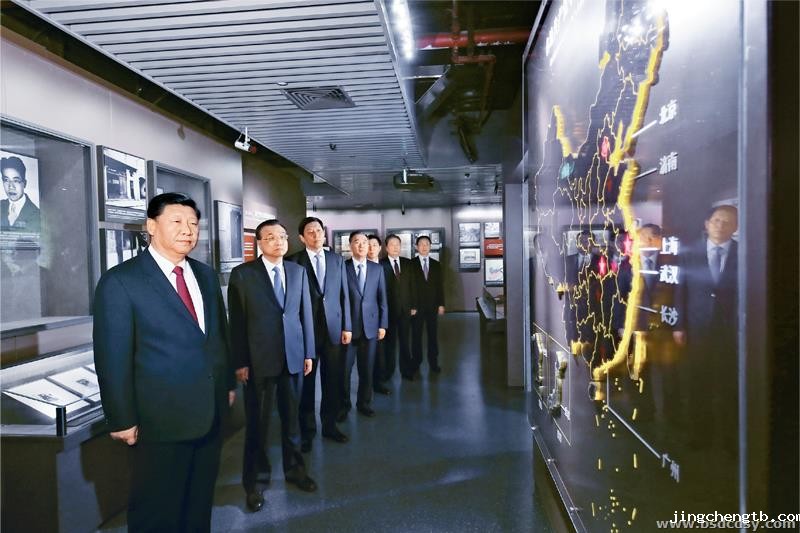 2017年10月31日,中共中央总书记、国家主席、中央军委主席习近平带领中共中央政治局常委李克强、栗战书、汪洋、王沪宁、赵乐际、韩正,瞻仰上海中共一大会址和浙江嘉兴南湖红船。这是31日上午,习近平等在上海中共一大会址纪念馆参观。 新华社记者 兰红光/摄