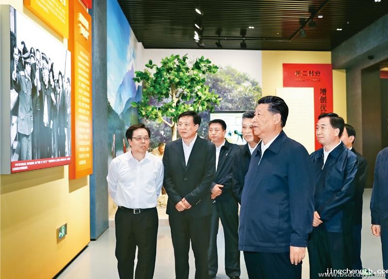 2019年5月20日至22日,中共中央总书记、国家主席、中央军委主席习近平在江西考察,主持召开推动中部地区崛起工作座谈会并发表重要讲话。这是习近平在赣州市于都县中央红军长征出发纪念馆会见于都县的红军后代、革命烈士家属代表。 新华社记者 鞠鹏/摄