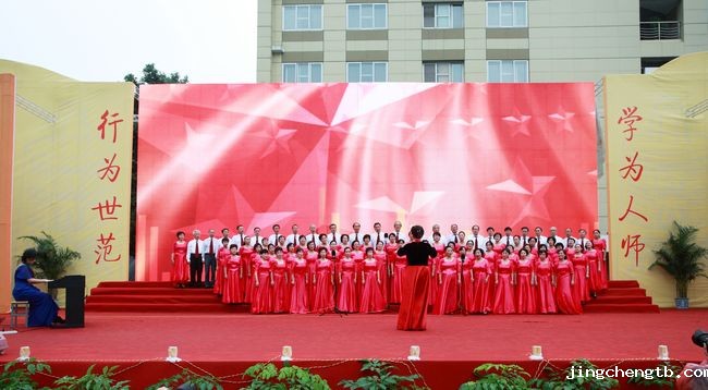 2.合唱《爱我中华》《走进新时代》(退休教师、校友合唱团)