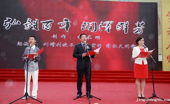 诗朗诵《弘毅百年,润泽群芳》(刘增利校长、阙楠老师、高2013级陈乐天同学):