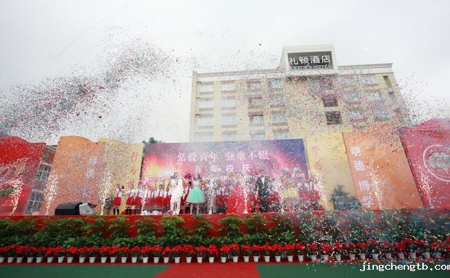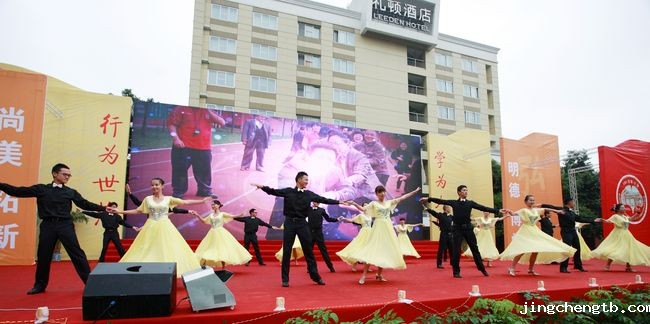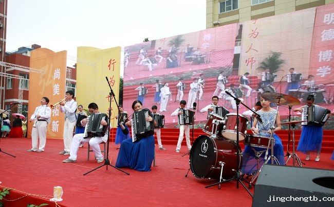 庆典上每一个节目都是精品,都有很强的艺术感染力。合唱《送别》刚唱出第一个乐句,台下的老校友已经眼含热泪。舞蹈、手风琴,独唱等等都得到了与会校友嘉宾的称赞。鼓队的同学穿着单薄的衣服站在细雨中,但他们打出了威风,打出了豪迈。台下的同学们秩序井然,坐在那里手都被雨水浸泡的麻木了,仍然坚持着与台上互动配合。庆典志愿者本着热情、细致、奉献的志愿者精神坚守在每一个岗位上,使各个环节的联络畅通及时。