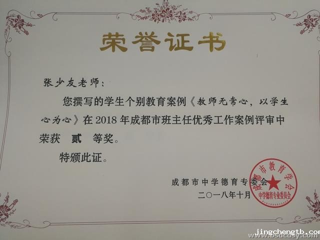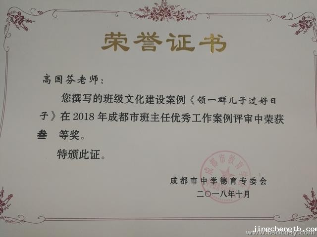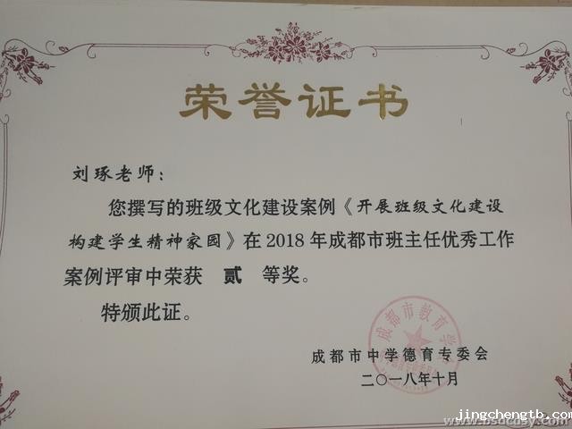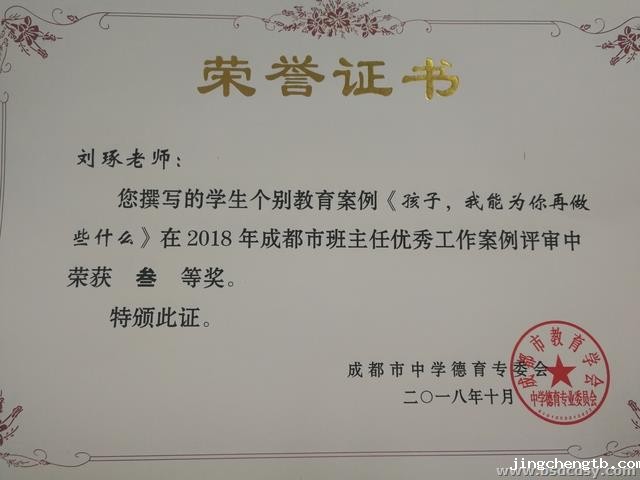 在2018年由成都市中学德育专委会组织的班主任优秀工作案例评审活动中,我校教师的工作案例喜获丰收。具体目录如下: