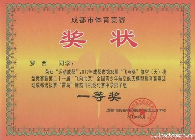 我校凌锡帮老师带领的团队在“运动成都”2019年成都市第38届“飞燕奖”航空(天)模型竞赛暨第二十一届“飞向北京"全国青少年航空航天模型教育竞赛活动成都选拔赛中,一举夺得了三个项目的五个一等奖。在“翼神”橡筋动力扑翼机竞时赛中,我校朱华飞和谢天祺两位同学分别荣获中学男子组一等奖;在仿真橡筋动力直升机竞时赛中,我校罗西同学荣获中学男子组一等奖;在“雷鸟”橡筋飞机竞时赛中,我校罗西和朱华飞两位同学分别荣获中学男子组一等奖。大赛组委会授予凌锡帮老师“优秀辅导员”称号,同时我校荣获优秀组织奖。